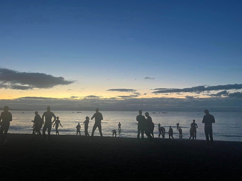 I’m pleasantly surprised at how warm the sea is for  the end of October. The race is scrappy. Waves seem to make seeing the buoys difficult so people are all over the place. I can’t take my usual outer path as people swim across me in both directions. I can’t get into my meditative state as people are getting in my way. Im thinking about the race. I can’t see much in the water bar the odd buoy rope. I put my head down and get on with the job in hand.